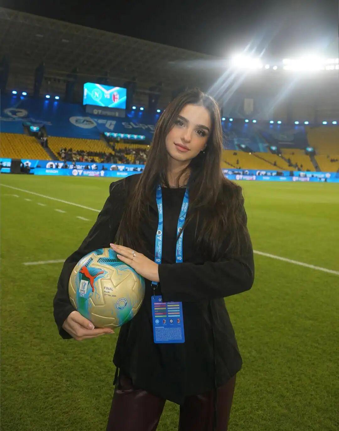 出生于2002年7月的达莉拉·安娜·斯塔比莱,是一位意大利足球内容创作新星。23岁的她曾供职于DAZN,涉猎过欧冠、欧联、意甲等赛事,拥有较为丰富的场边报道经验,同时也与各种品牌、供应商合作,主持电视、电台和网络节目。去年夏天,斯塔比莱参与主持了意大利版“国王联赛”,令其人气在短时间内迅速蹿升。目前,她的Instagram平台粉丝数量已经超过21万,TikTok平台粉丝数量也接近20万。